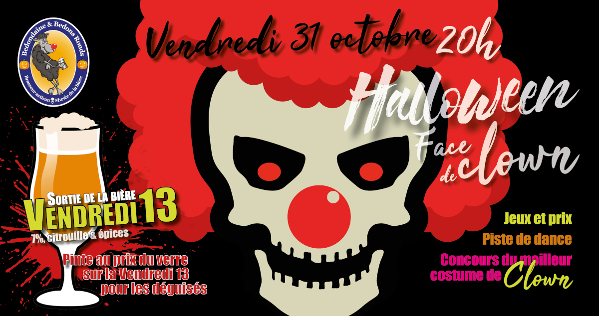 Pinte au prix du verres pour les déguisés – Jeux et prix – Piste de danse – Concours du meilleur costume de clown