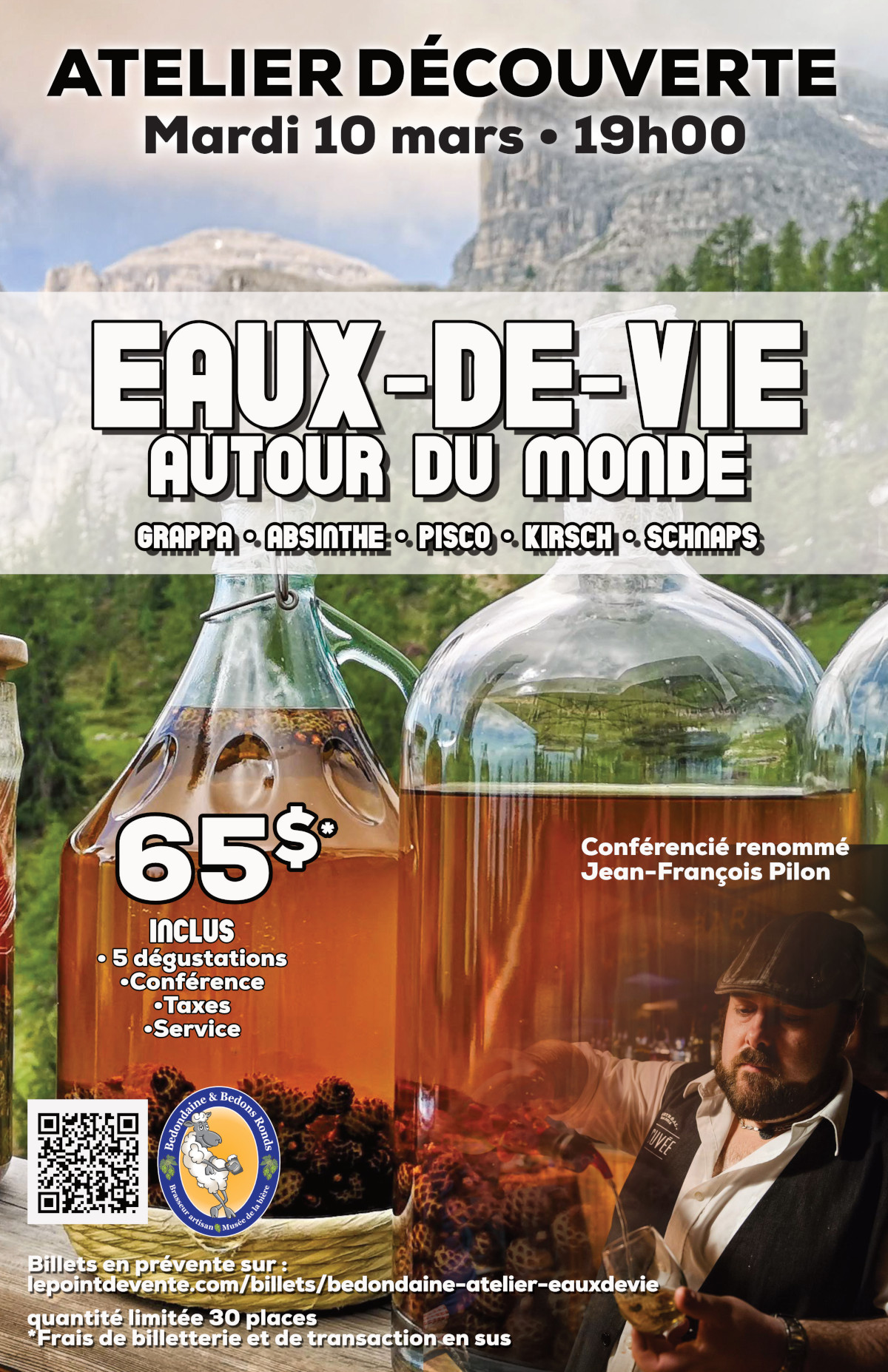 Atelier découverte sur les eaux-de-vie du monde avec 5 dégustations commentées. Grappa, absinthe, pisco, kirsch et schnaps au programme.