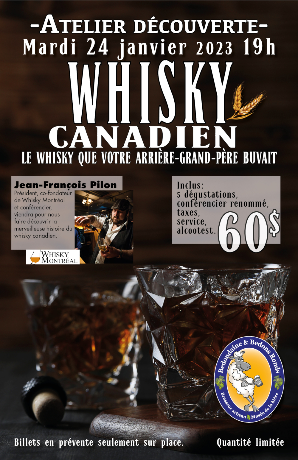 Mardi 23 janvier 2024 à 19h. Inclus : 5 dégustations, conférencier renommé, taxes + service. 65$ – Billets en prévente seulement sur place. Quantité limitée
