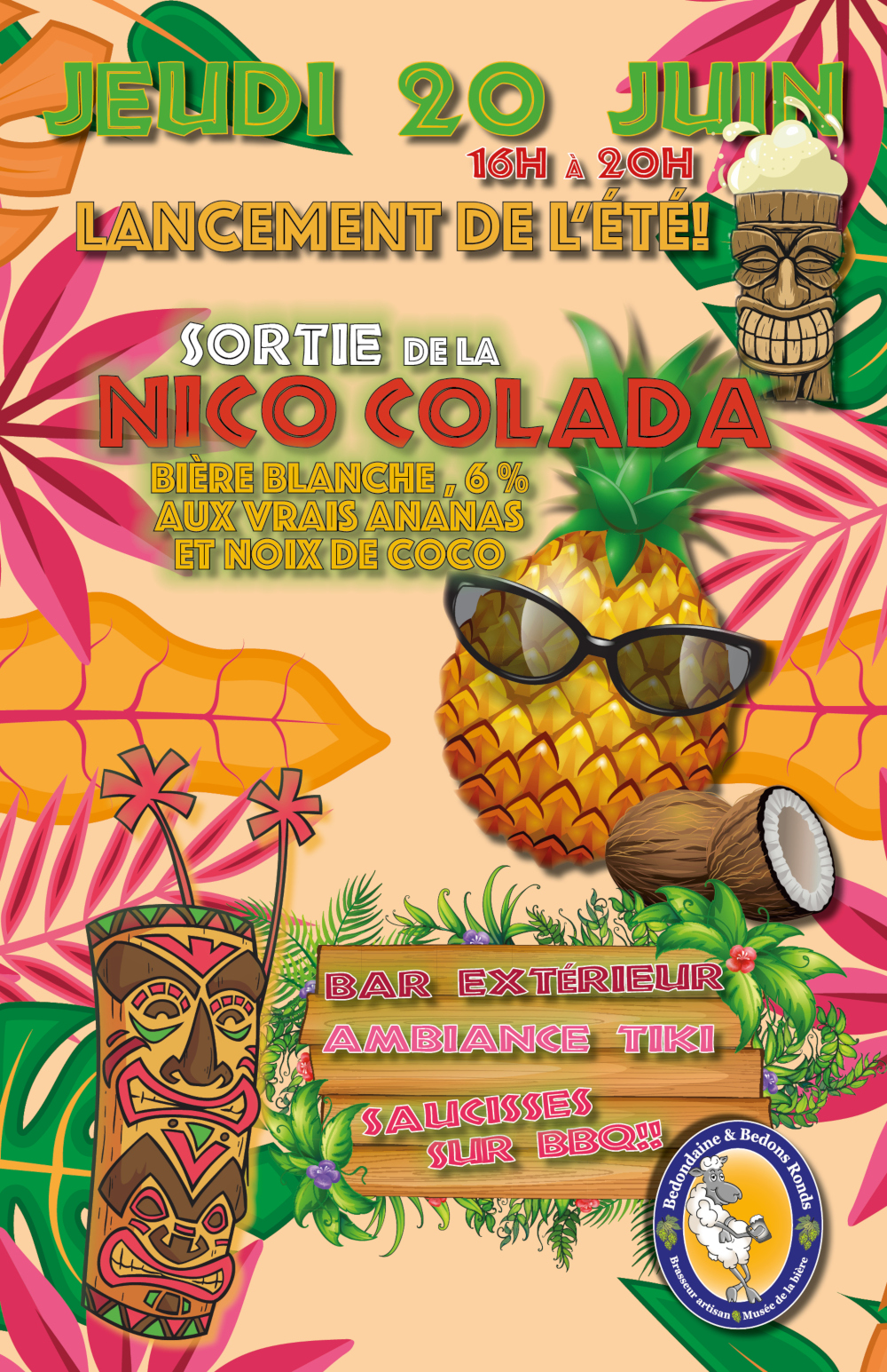 4pm to 8pm – Release of Nico Collada, white beer with real pineapple and coconut- Outdoor bar- Tiki atmosphere – BBQ sausage