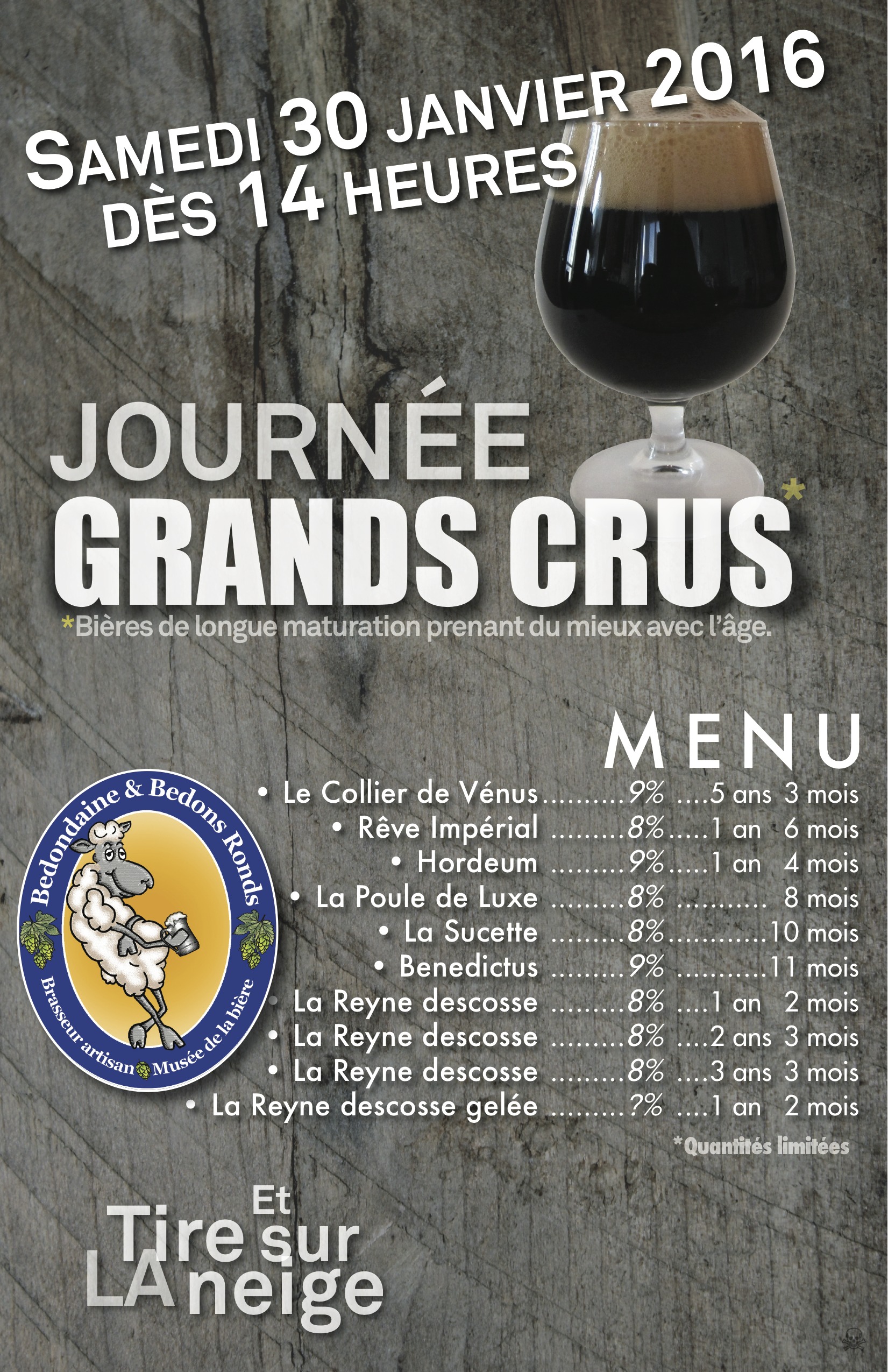 Come and try our aged beers next January 30th, starting at 14h. We’ll serve maple taffy on snow too!
